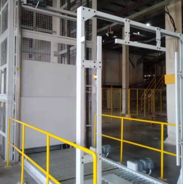 • 升降轿厢:承载货物平台,可配滚筒线、链条线、皮带线,与前后输送线自动对接。